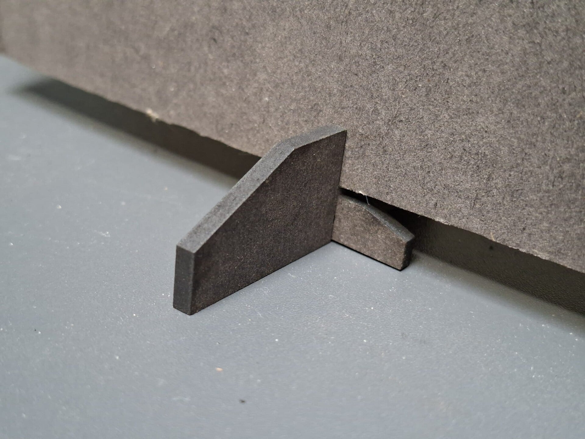 ✔ Standaard geleverd met zwarte nageltjes om tegen de muur te hangen. (Gaatjes voorzien in het product) Nageltjes word tot het mdf gelijk geslagen in de muur. (zie foto)