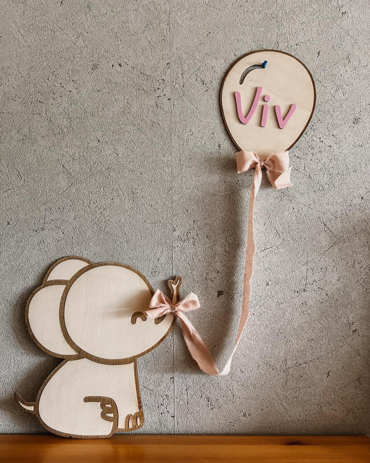 Olifant met ballon, ideaal voor een kinderkamer op te leuken of af te geven op een babyborrel.