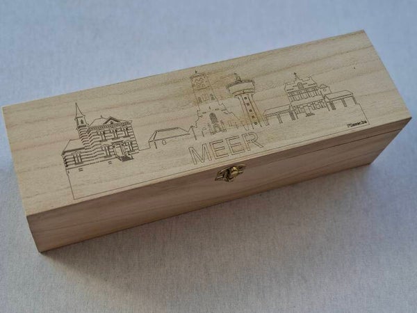 Het betreft hier 1 wijnkist die geraveerd word met een skyline naar keuze.